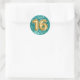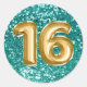 L'arrière - plan présente une parties scintillant de style chunky confetti turquoise faux brillant avec le nombre est créé avec le nombre faux brillant texte de style bulle en feuille d'or style. Je peux ajouter d'autres numéros d'anniversaire au texte de la bulle au besoin. Le faux film de luxe et la parties scintillant sont numériquement images créées qui s'impriment comme une photo. Doux autocollants 16 ou 16e anniversaire.
