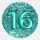 L'arrière - plan présente une parties scintillant de style chunky confetti turquoise faux avec le nombre est créé avec le nombre faux brillant texte de style bulle vert turquoise style de tableau. Je peux ajouter d'autres numéros d'anniversaire au texte de la bulle au besoin. Le faux film de luxe et la parties scintillant sont numériquement images créées qui s'impriment comme une photo. Doux autocollants 16 ou 16e anniversaire.