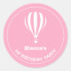 Sticker Rond 1er anniversaire Ballons à air chaud rose et blanc