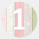 Sticker Rond 1er anniversaire Sage rustique Vert & Rose Bois Fl