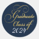 Sticker Rond 2024 Graduate Elegant Gold Blue Party Merci