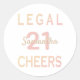 Un autocollant pour une fête de 21e anniversaire. Personnalisez et ajoutez un nom et 21 ans. Or doré et rose, lettres de couleur rose. Une couleur arrière - plan blanche chic. Le texte : Légal et Bravo en or doré et rose en gras.