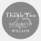 Autocollant rond classique 25e anniversaire silver stardust confettis merci. Personnalisez vos noms en lettrage blanc chic. Conçu par Thisisnotme