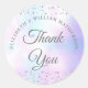 30 ans anniversaire de mariage coeurs confettis perle merci, autocollant rond classique. Conçu pour aller avec notre collection Coeurs Confettis Perle 30 ans. Avec des coeurs délicats. Personnalisez avec vos noms.