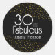 30 et Fabulous Gold Parties scintillant 30e Anniversaire Sticker rond. Autocollant d'anniversaire moderne et élégant avec typographie branchée et taches de parties scintillant faux or. Le design a un nom personnalisé. Faites-lui un autocollant personnalisé de 30e anniversaire.