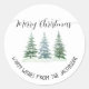 Ces autocollants de vacances charmants sont parfaits comme sceaux d'enveloppe ou étiquettes de cadeau. Ils présentent un design aquarelle rustique avec trois pins, sapins ou épicéas enneigés et une lettre calligraphiée élégante disant : Joyeux Noël ! Il y a de l'espace pour une courte note ou message en dessous. Optimisé pour des autocollants de forme ronde