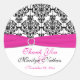 Sticker rond 3 pouces rose, blanc et noir Damask