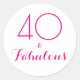 40 et Fabuleux autocollant d'anniversaire. Servir de sceau d'enveloppe ou de faveurs pour les fêtes. La typographie est en rose vif. Cette couleur peut être changée à l'aide du bouton "Customiser".
