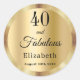 Élégant, classique, 40 et fabuleux autocollant d'anniversaire. Une couleur arrière - plan à l'apparence or fax avec un cadre doré. Le texte : 40 et fabuleux. Modèles pour son nom et un rendez-vous. Date de naissance ou date de la fête. Parfait pour les fêtes ou comme un rappel de date pour vos invités.