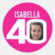 Joyeux Anniversaire 40 photo brillant rose chaud et blanc collants de faveur. Célébrez un 40e anniversaire avec ces stickers graphiques amusants. Personnalisez avec une photo de la fille d'anniversaire. Idéal pour ajouter un peu de plaisir à la fête d'anniversaire faveurs et cadeaux. Ajoutez votre nom ou vos remerciements selon vos besoins. Idéal pour être offert en faveurs aux invités de votre fête d'anniversaire. Autres couleurs et âges disponibles. Design exclusif par Sarah Trett pour www.mylittleeden.com