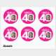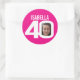 Sticker Rond 40e anniversaire rose blanc personnalisé nom faveu