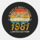 Sticker Rond 44 Ans 1981 Retro Awesome 44e anniversaire Cadeau