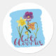 Sticker Rond 4 Spring and Summer Flowers with Fancy Text