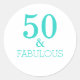 Sticker Rond 50 Et Fabuleuse fête d'anniversaire Turquoise Blan