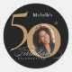 Sticker Rond 50e Anniversaire Calligraphie Or Black Elegant Pho