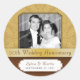 Célébrez ce couple spécial avec cet autocollant de fête de l'Anniversaire d'or. Leur portrait encadré est posé contre un arrière - plan à motif damassé doré avec un panneau bordeaux foncé en dessous, séparé par une bande dorée avec votre message principal. Ajoutez leurs noms et la date mariage (ou tout autre texte) dans le cadre en dessous. Idéal pour sceller les enveloppes ou utiliser sur les sacs de faveur. Produits correspondants disponibles. com