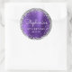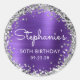 Ces élégants stickers de 50ème anniversaire (ou n'importe quelle année) présentent un arrière - plan en métal brossé violet avec une bordure en parties scintillant argent glam. Personnalisez-les avec le nom de l'invitée d'honneur en écriture manuscrite blanche, ainsi que son anniversaire et sa date en caractère sans serif.