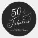 Un joli autocollant noir pour vos invitations à la fête du cinquantième anniversaire, la correspondance et les faveurs de fête. Ce design élégant et chic présente "50 & Fabulous" écrit dans un script de calligraphie blanc. Customisez avec votre nom.