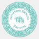 Sticker Rond 50e anniversaire Numéro 50 Motif Turquoise et blan