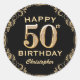 Sticker Rond 50e anniversaire Parties scintillant noir et or ca