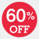 Sticker Rond 60% Soixante% OFF escompte vente blanc rouge