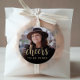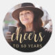 Cet autocollant personnalisé de 60e anniversaire présente la photo et l'anniversaire personnalisés de l'invité d'honneur, ainsi que le mot "Cheers" dans un élégant script de calligraphie couleur or. Un écran sombre permet de faire apparaître le texte. Une excellente façon de célébrer quelqu'un qui a soixante ans !