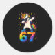 Sticker Rond 67 Unicorn Dabbing Six Sept Mème Drôle