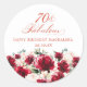 Ajoutez une touche spéciale à votre fête d'anniversaire avec cet élégant autocollant rond 70 & Fabulous anniversaire. Il est doté d'une bordure florale couleur aquarelle rouge rose et pivoine rose le long du fond. Les feuilles vert foncé lui donnent une ambiance botanique rustique. Fabulous est écrit dans un magnifique script classique. Ajoutez une touche personnelle au nom et à l'anniversaire du célébrant d'anniversaire ci-dessous. Cet article fait partie de la collection Red Rose Pink Peony. Il contient des modèles d'invitation professionnels, des panneaux d'accueil personnalisés et des fournitures de fête.