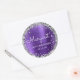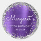 Ces élégants stickers de 70ème anniversaire (ou n'importe quelle année) présentent un arrière - plan en métal brossé violet avec une bordure en parties scintillant argent glam. Personnalisez-les avec le nom de l'invitée d'honneur en écriture manuscrite blanche, ainsi que son anniversaire et sa date en caractère sans serif.