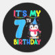 Sticker Rond 7 Year Old Birthday Penguin Themed It's My 7th Bir