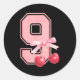 Sticker Rond 9th Birthday Girl Cherry Coquette Bow 9 Year Old G