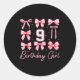 Sticker Rond 9th Birthday Girl Coquette Bow Nk Floral Toile 9 Y