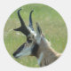Sticker rond Pronghorn Antelope Big Buck Head Profil. L'antilope de prune est par nature un animal curieux et quand ils ne sont pas chassés permettra à une personne de s'approcher d'eux si vous restez calme et bougez lentement.