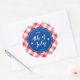 Accessoire votre fête de l'Indépendance avec cet autocollant en vichy rouge patriotique à damiers. Un cercle bleu au centre dit "4 juillet" en écriture entouré d'étoiles blanches et des endroits pour ajouter votre nom de famille et la date/année.