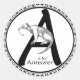 Un fourmier assis sur la lettre "A", avec une fourmi sur le bout de sa langue longue.