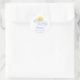 This cute baby shower sticker is decorated with a yellow watercolor sun, clouds, and stylish blue typography.