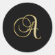 Sticker Rond "A" Monogramme initial en or sur noir.