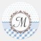Sticker Rond À petits pois bleus, chèques et bandes avec Monogr