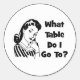 Voici un design graphique amusant rétro qui présente une femme se demandant "À quelle table dois-je aller?. Ce design convient bien aux groupes Bunco, aux serveurs, aux serveuses, aux restaurants, aux bars ou simplement pour s'amuser.