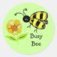 Sticker Rond Abeille occupée avec Fleur Jaune