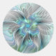 Sticker Rond Abstrait Bleu Vert Papillon Imaginaire Fractal Art