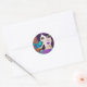 Sticker Rond Abstraite fille et oiseau pourpre et Turquoise