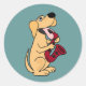 Sticker Rond AC- Chien chiot jouant au dessin saxophone