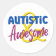 Autocollant bleu rose et jaune avec les mots "Autistic & Awesome"
