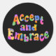 Sticker Rond Accepter et adopter la typographie arc-en-ciel