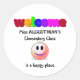Bienvenue à l'enseignant mignon sur les autocollants de ma classe, montrant un ACCUEIL coloré brillant suivi d'un libellé qui dit (insérez votre nom ici) LA CLASSE EST UN ENDROIT HEUREUX. Ce texte est PERSONNALISABLE pour que vous puissiez ajouter votre nom et votre classe ou créer votre propre texte. Il y a aussi une icône de visage souriant. Vous pouvez utiliser ces autocollants de bienvenue pour accueillir vos nouveaux élèves à l'école. Des cadeaux correspondants sont disponibles.