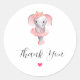 stickers Merci avec une adorable illustration. Un éléphant gris ceint d'un tutu rose et des fleurs dansant le ballet, en pointe.
