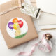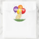 Cachez le courrier pour une fête d'anniversaire ou changez le message pour d'autres idées de fête avec cet adorable autocollant. Le motif mixte photo et autocollant rond d'art numérique présente un canard jaune sur l'herbe avec quatre ballons colorés entre eux et au-dessus avec quelques confettis flottant autour d'eux. Personnalisez le message dans le champ modèle ou cliquez sur customiser pour sélectionner le style, la taille et la couleur de police que vous préférez.