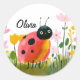 Sticker Rond Adorable Ladybug Girl's Name Wildflowers
