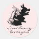 Sticker Rond Adorable Lapin Amour Pun Noir Ombre Main Sur Rose